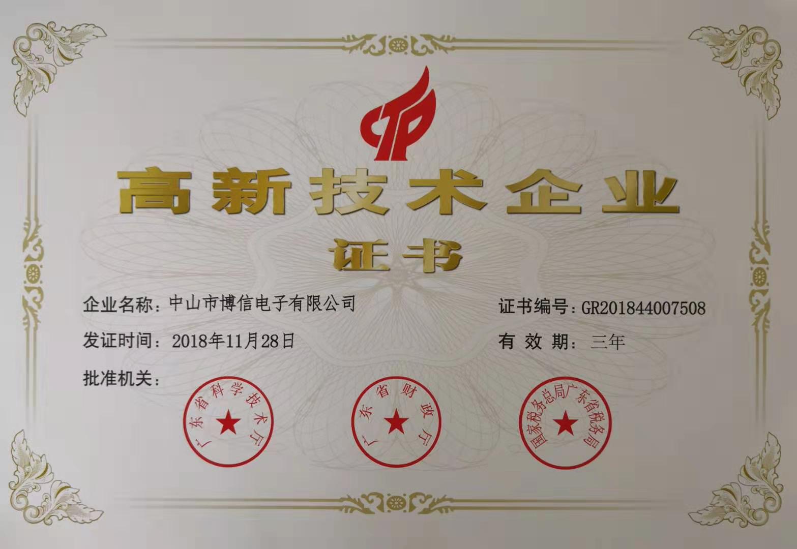 資質(zhì)證書-喜獲高新技術(shù)企業(yè) |